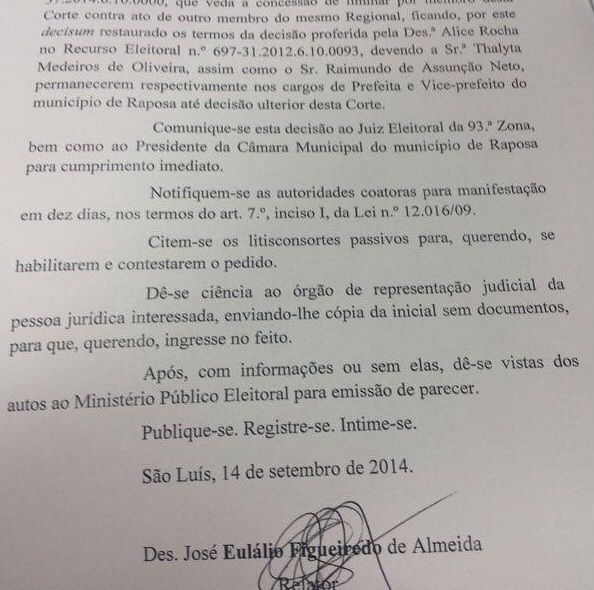 A politicagem está rolando solta na cassação de Clodomir, uma vez que o deputado Edilázio Júnior (PV), aliado de Talita, garantiu a ela que Clodomir seria cassado de qualquer jeito e que confiava na força da sogra dele, a desembargadora Nelma Sarney, corregedora geral de Justiça. Agora é aguardar a justiça divina…porque o deputado deixou bem claro no último comício realizado dia 07/09, que estava para matar ou para morrer. Vergonha das nossas autoridades! Esse deputadozinho não me representa!