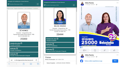Para demonstrar a fraude à cota, os advogados de Foguinho anexaram prints e vídeos de redes sociais com Nilda Sousa pedindo votos para o esposo Zé Nunes, o que seria prova cabal de sua condição de laranja no pleito.