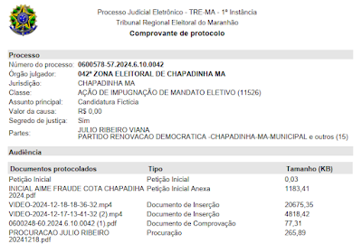 Na Ação de Impugnação de Mandato Eletivo – AIME, print acima, os advogados de Foguinho alegam que o PRD lançou mão de pelo menos duas candidatas laranjas em conduta considerada fraude à cota de gênero.