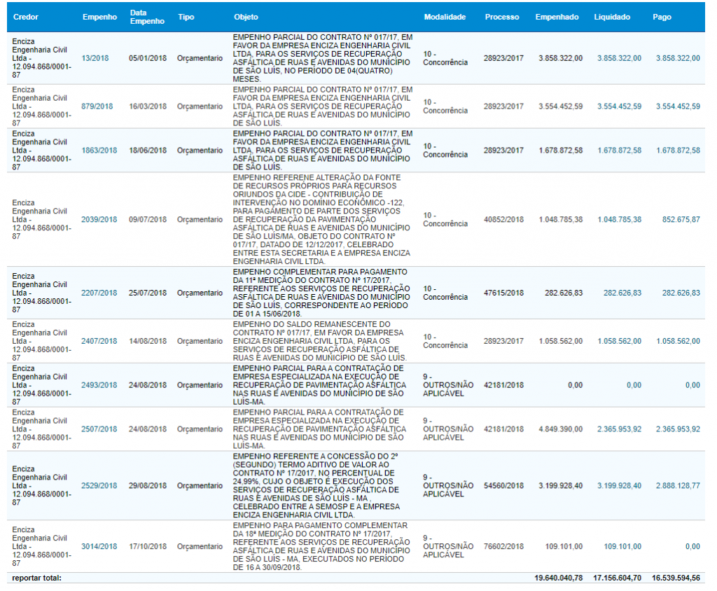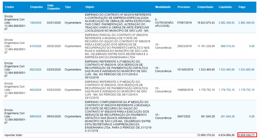 Desse montante, José Lauro já recebeu R$ 35.066.309,59 milhões, de acordo com a Transparência de São Luís.