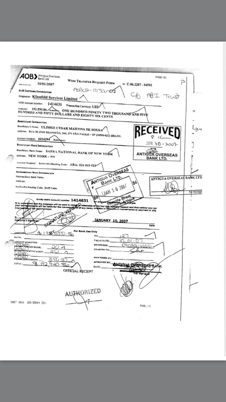 Documentos obtidos pelo Blog do Neto Ferreira mostram cifras vultosas de transferências da conta da Odebrecht para a conta do advogado Ulisses. Os bancos usados foram Overseas Bank e Safra National Bank, conforme mostra os documentos abaixo.