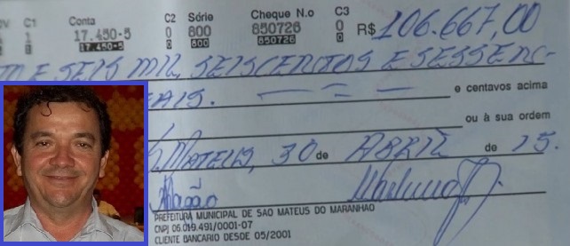 Preso nas Operações “Maharaja” e “Morta-Viva”, o agiota Josival Cavalcante da Silva, o Pacovan, possuía não somente um, mas sim dois cheques da Prefeitura de São Mateus, que tem como gestor Hamilton Nogueira Aragão, o Miltinho (PSB).