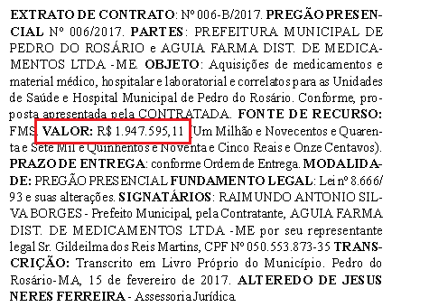 A Águia Farma, localizada em São Luís, foi a única vencedora do Pregão Presencial Nº 006/2017 realizado pela Prefeitura de Pedro do Rosário e deve faturar milhões somente em 2017.