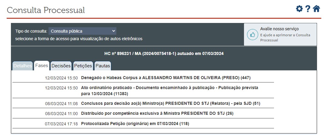 A decisão da presidente do STJ deverá ser publicada amanhã (13) no sistema da Corte.