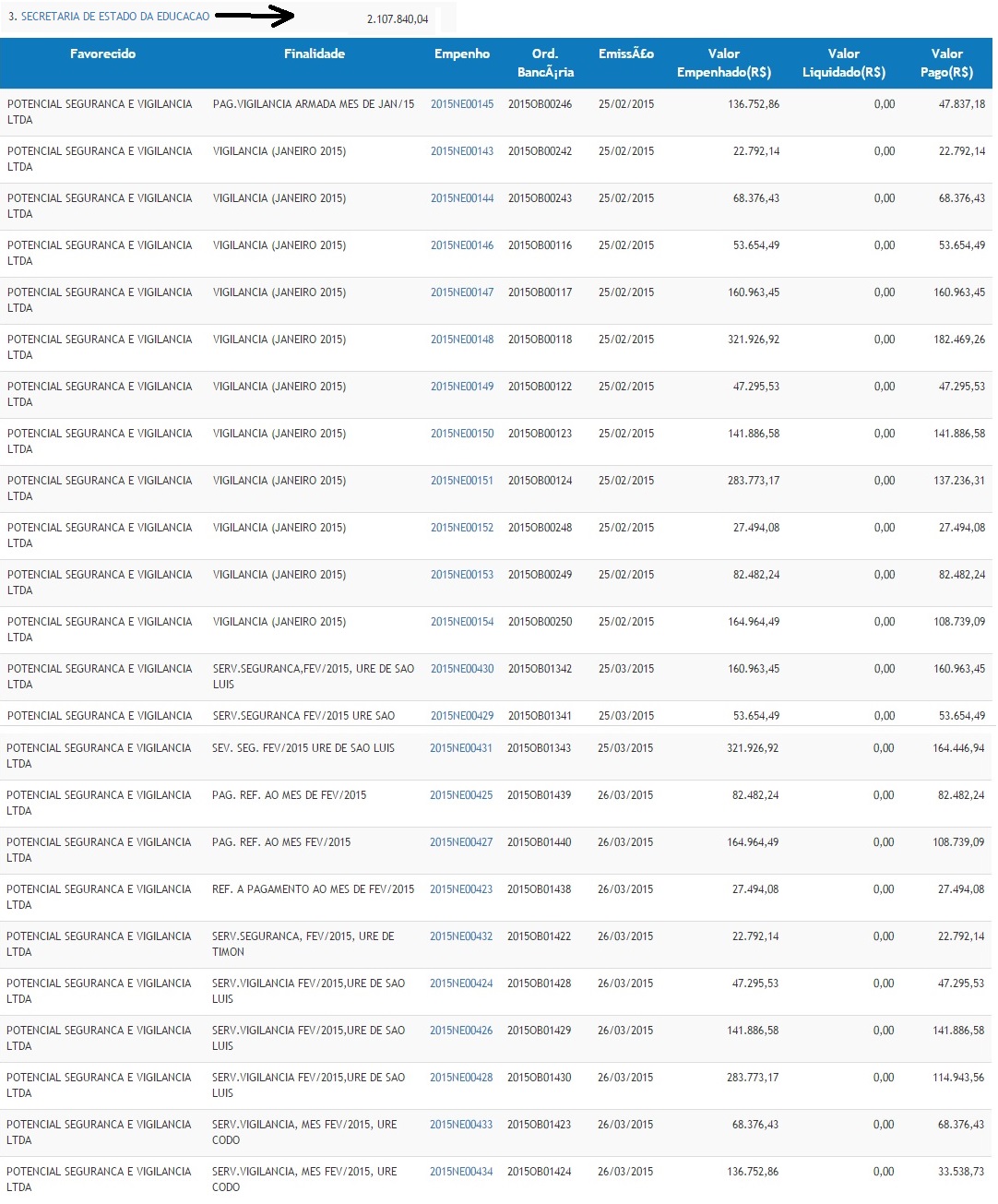 Um levantamento do Blog do Neto Ferreira no Portal da Transparência indica que somente nos primeiros meses de 2015, a Potencial já embolsou R$ 3.159.998,31 milhões da Seduc e Sectec, os dois órgãos em que a Potencial mais tem faturado. A empresa que presta serviços de vigilância e que já vinha lucrando com outras secretarias e órgãos estaduais continua a todo vapor.