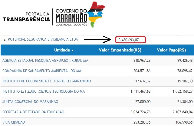 Na lista da Transparência também aparecem os órgãos Agerp (R$ 99.426,48), Caema (R$ 78.098,42), Jucema (R$21.384,00) e Viva Cidadão (R$106.598,56) somando o valor descabível de R$ 3.480.693,07 milhões pagos a empresa de Erick este ano.