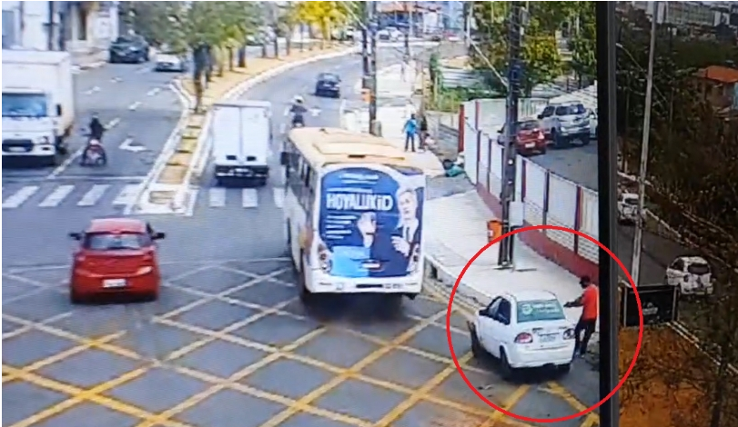 Gravação das câmeras de videomonitoramento da Prefeitura de São Luís mostram que o condutor do veículo Corsa branco descendo pela contramão na Avenida Alexandre Moura, em frente ao Batalhão do Corpo de Bombeiros.