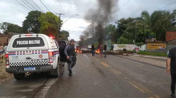 Os manifestantes atearam fogo em galhos de árvores, impedindo a passagem de veículos na rodovia estadual, localizada na Região Metropolitana de São Luís.