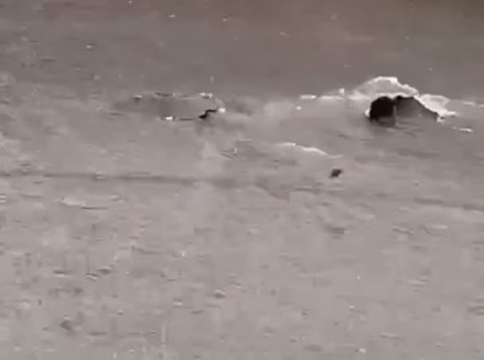 Vídeo publicado pelo Folha do Maranhão mostra a rua completamente alagada e a pavimentação virando “papel” com a forte chuva que atingiu a capital no último sábado (13).