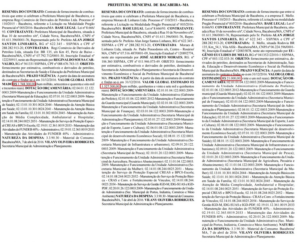 A Prefeitura de Bacabeira, comandada por Alan Jorge Linhares, celebrou contratos milionários para garantir o fornecimento de combustíveis para Secretarias Municipais e para a própria Prefeitura.
