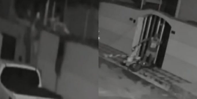 Vídeos gravados pelas câmeras de segurança mostram toda a ação do assaltante, que quebra a cerca elétrica para conseguir adentrar no imóvel. No local, ele conseguiu acessar a despensa, onde consumiu alimentos e pegou roupas que estavam próximas.