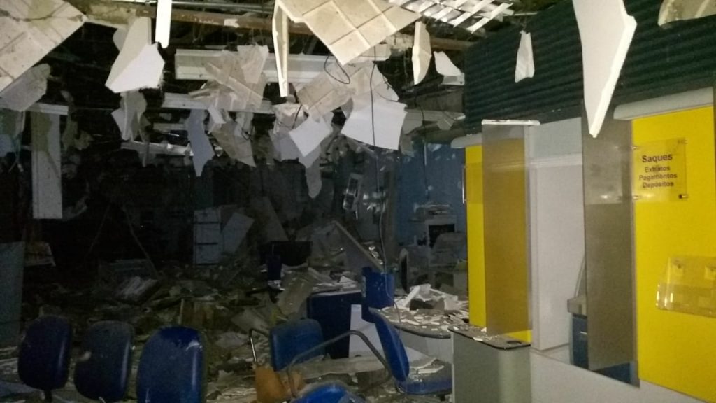 Após a ação criminosa, o bando seguiu para a agência bancária, onde utilizaram explosivos na tentativa de chegar ao cofre. No entanto, o teto desabou antes.