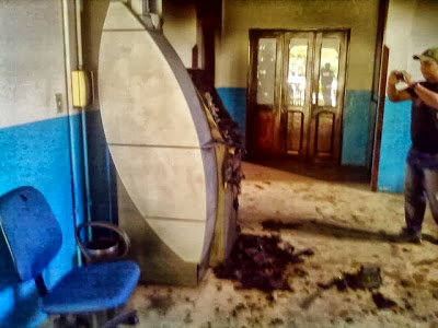 Eles usaram um maçarico para tentar tirar o dinheiro que havia sido colocado na noite anterior (o pagamento dos funcionários públicos seria feito hoje), mas algo deu errado e o caixa começou a pegar fogo. Foi quando os seis criminosos fugiram sem levar nenhuma quantia. Até o momento não há qualquer informação sobre os suspeitos.
