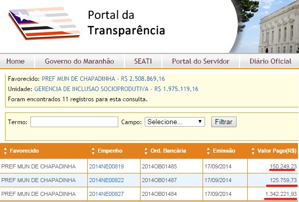 Ontem (17), a governadora Roseana Sarney fez três repasses para o município de Chapadinha, comandado pela prefeita Dulcilene Pontes Cordeiro, a Belezinha (PRB), sendo R$ 150.249,23; R$ 125.759,73; e R$ 1.342.221,93 – que somados totalizam mais R$ 1,6 milhão.