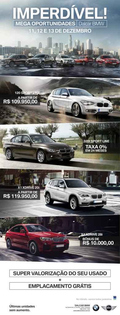A concessionária Dalcar BMW está com uma mega oportunidade que você vai adorar. Além do emplacamento grátis e super valorização do veículo usado, a Dalcar está com preços de dá inveja a concorrência.