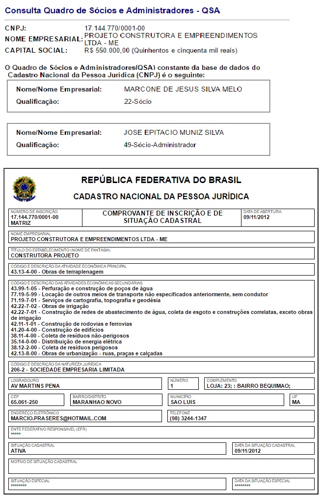 Uma das empresas que operava no esquema é a Construtora Projeto, que desenvolve entre outra atividades, obras de terraplanagem, coleta de lixos perigosos e perfuração de poços artesianos; e a São Jorge, que provavelmente foi encerrada.