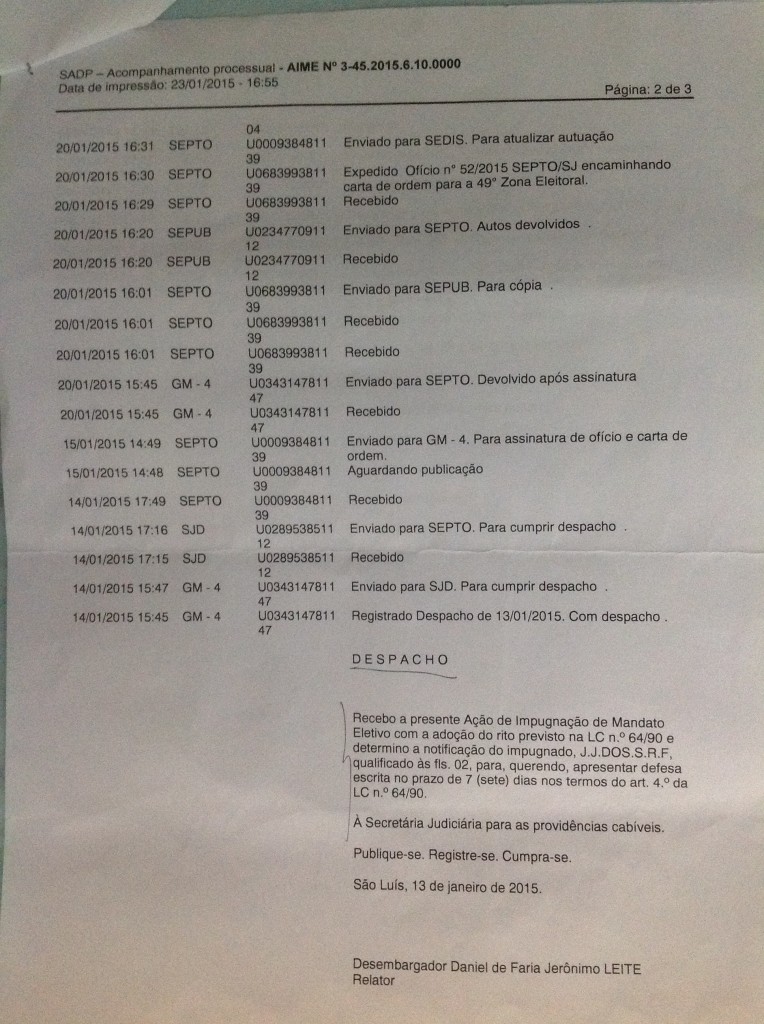 José Juscelino dos Santos Rezende Filho, que obteve 83.955 votos, foi notificado em janeiro para, no prazo de 7 (sete) dias, apresentar defesa sobre a acusação.