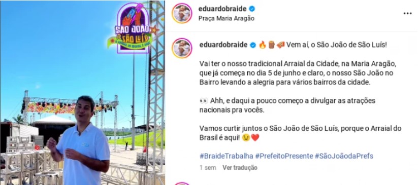 Antes do processo licitatório ser finalizado, o prefeito da capital já havia anunciado em seu perfil em rede social a montagem do Arraial da Cidade, instalado na Maria Aragão, com programação festiva agendada para iniciar no dia 5 deste mês.