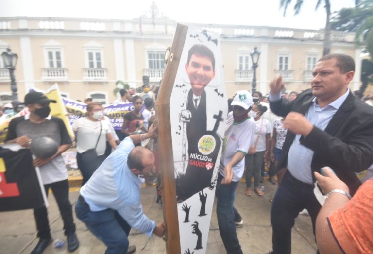 Para cobrar os recursos, os manifestantes fizeram um um cortejo fúnebre do prefeito Eduardo Braide, pois durante a sua campanha eleitoral prometeu dar prioridade para a saúde de São Luís.