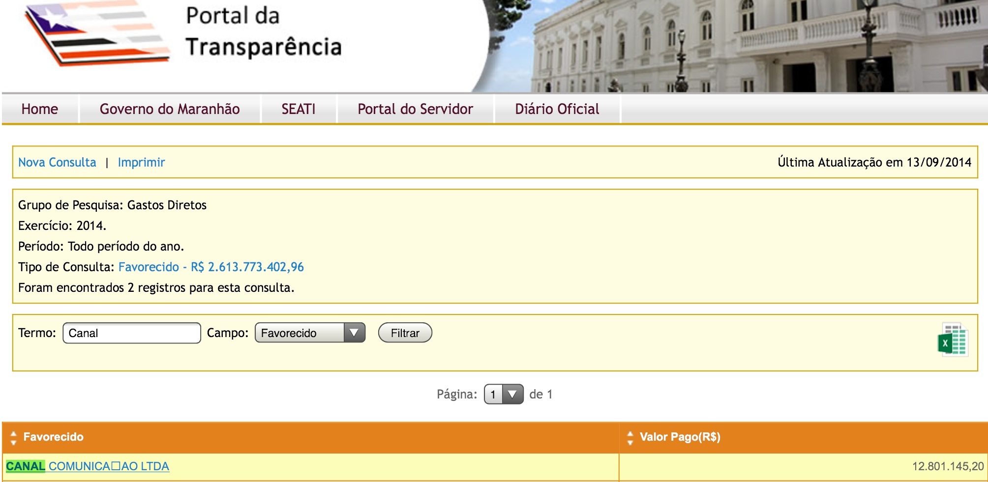 No ano de 2012 foram pagos em contratos aproximadamente R$ 112.352.667,09 com empresas de sonorização, eventos, fornecimento de combustível e agência de publicidade. Na época, quatro agências foram agraciadas com R$ 22 milhões cada qual. Entre elas, a Canal também aparece faturando mais de R$ 1 milhões.
