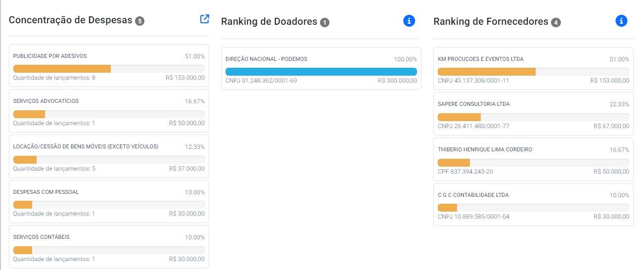 Dentre esses gastos, o maior foi com a propaganda, no qual foram usados R$ 153 mil.