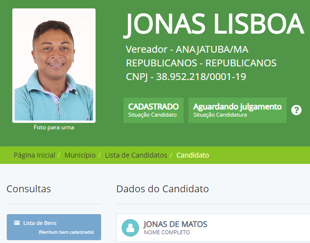 O nome do candidato criminoso é Jonas de Mato, mas na urna ele optou por Jonas Lisboa. A mudança de nome deve ter sido para ludibriar os eleitores, e evitar que atrelem seu sobrenome às práticas ilícitas praticadas em Anajatuba.