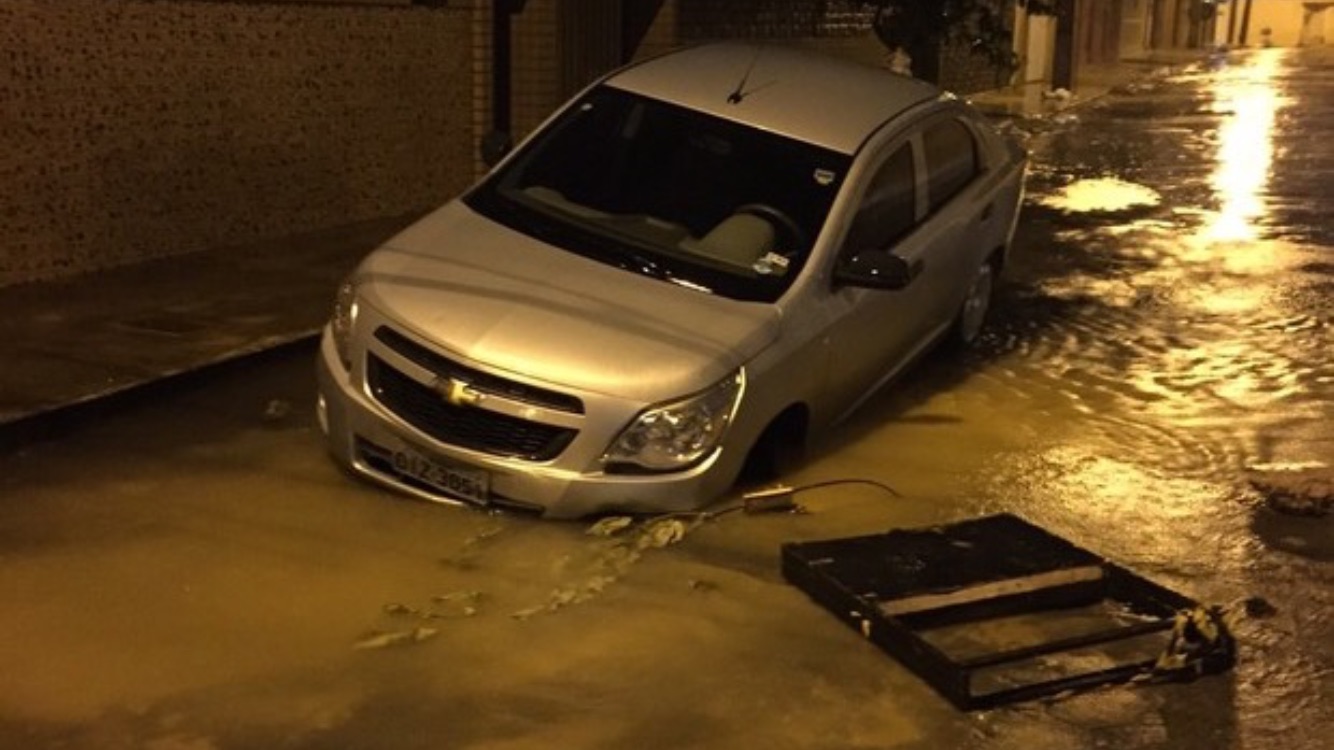 A rua estava completamente alagada e o condutor não conseguiu ver o problema no asfalto. Moradores da região já estão acostumados a passar por esse problema sempre que as fortes chuvas assolam a capital.