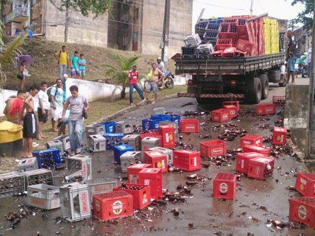 De acordo com testemunhas, o veículo foi subir uma ladeira íngrime, mas parte da carga não suportou a subida e caiu na pista, quebrando várias garrafas de cerveja. O valor do prejuízo ainda não foi divulgado.