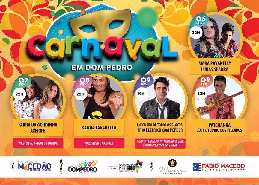 A Prefeitura de Dom Pedro, com apoio do Governo do Estado e do Deputado Fábio Macedo, está preparando o melhor carnaval que a cidade já viu, 4 dias de festas no cenário mais bonito da região, o recém inaugurado Balneário Macedão.