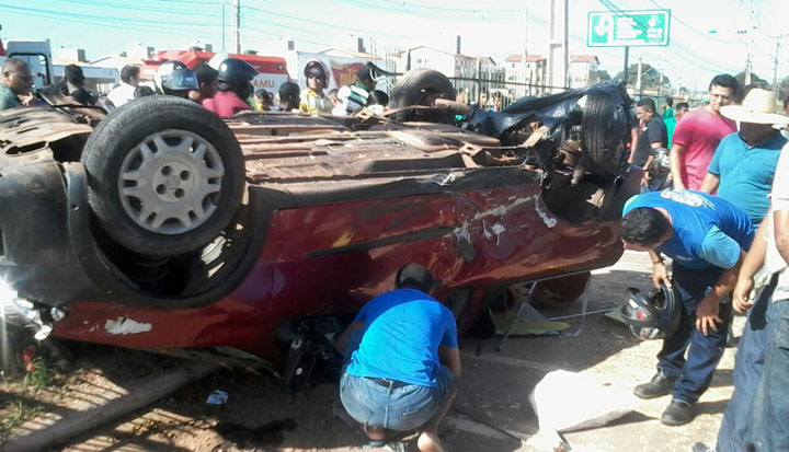 O condutor de uma Estrada vermelha, placa NHK – 0782 se deslocava no sentido Maiobão – Forquilha, quando capotou e colidiu com um Pálio, placa PSE – 8763 e depois atingiu uma motocicleta.