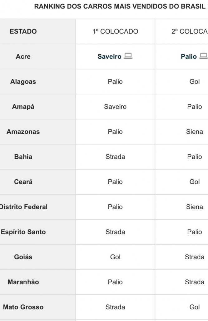 Em boa parte dos estados, a exemplo de Alagoas, Amazonas e Ceará a Fiat aparece como a montadora que mais faturou em suas vendas.