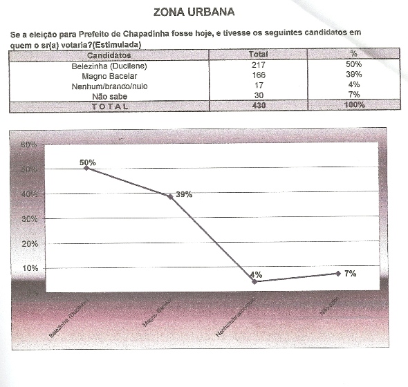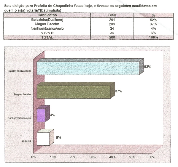 A pesquisa eleitoral realizada em Chapadinha nos dias 26 e 27 de julho, feita pela Exata, que foi suspensa após a coligação do candidato a prefeito, Magno Bacelar, impetrar na justiça Eleitoral e conseguir o direito do cancelamento dos números.