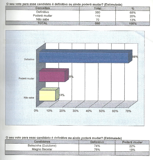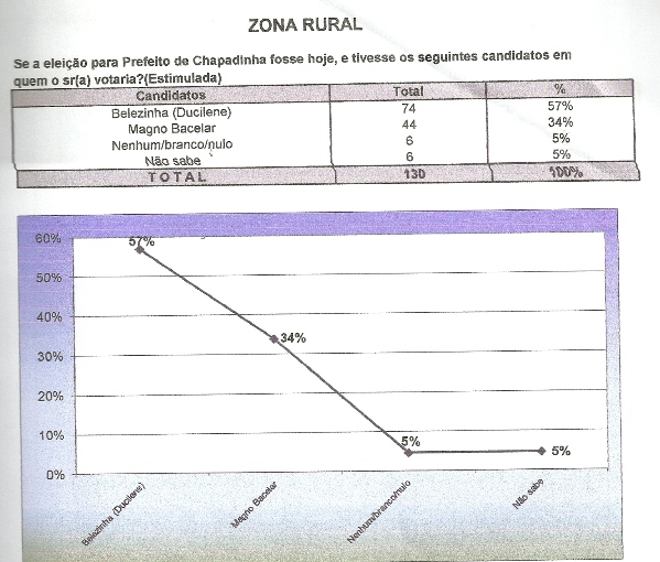 Foram entrevistados naquele município cerca de 560 pessoas, com idade a partir de 16 anos, residentes em bairros e povoados diferentes. Veja abaixo os cenários da pesquisa que foi suspensa pela Justiça Eleitoral