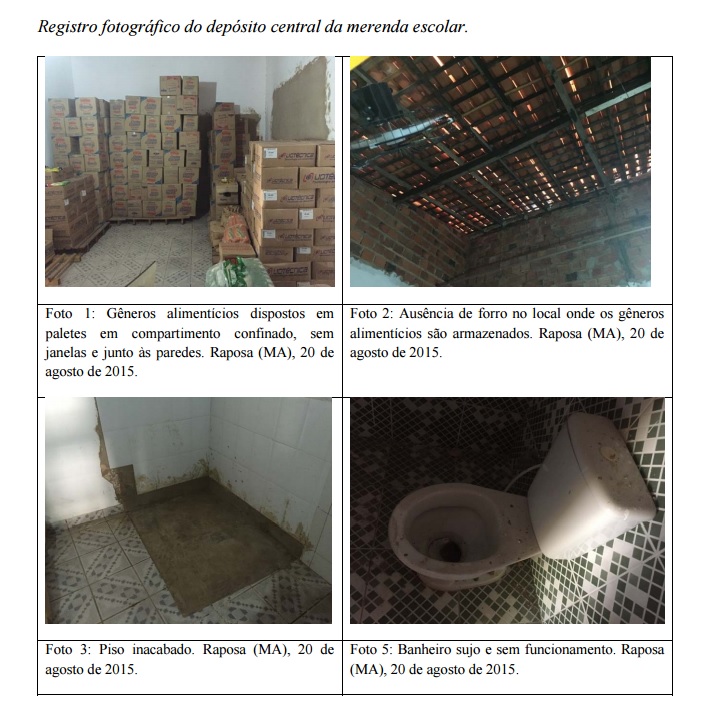 Uma vez que, não há instalações adequadas para garantir o bom acondicionamento dos produtos alimentícios, o preparo e a distribuição das refeições. Além disso, as necessidades nutricionais diárias não são suficientes para atender aos alunos tanto da educação infantil quanto do ensino fundamental. O relatório também afirma que a Prefeitura não possui controle de estoques dos alimentos.