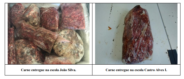 Durante a inspeção, a CGU constatou que carnes bovinas e de frangos congelados que foram entregues às escolas são de procedência duvidosas, pois todas estavam em sacos plásticos sem o carimbo do SIF/Ministério da Agricultura, como determina a Lei.