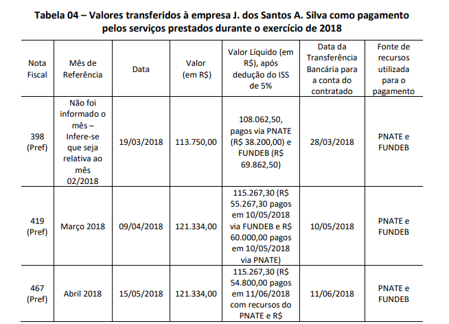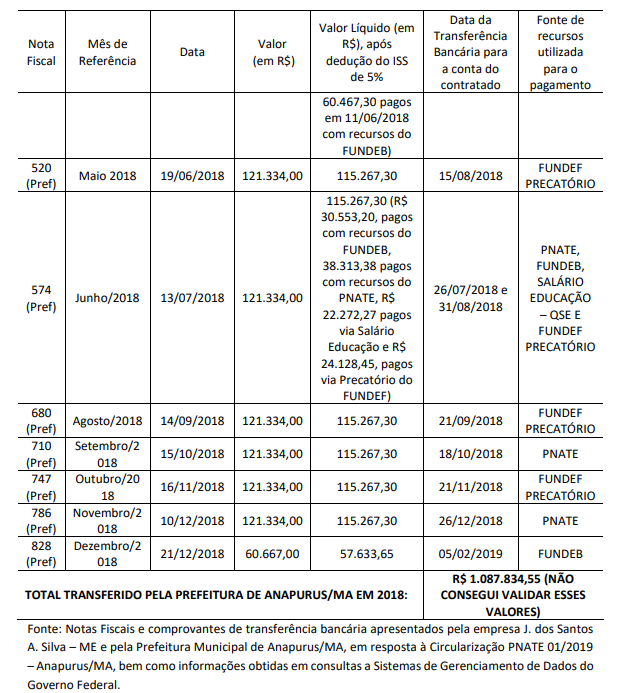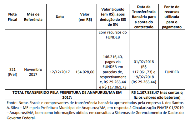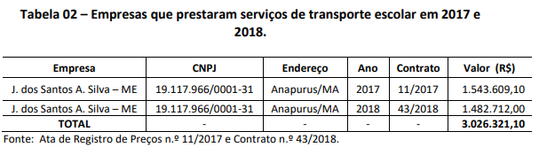 Os valores repassados serviram de subsídio para o cálculo do superfaturamento no serviço de locação de veículos para uso no transporte escolar rural de Anapurus. Nesse cálculo, também foram considerados os valores repassados pela contratada J. dos Santos A. Silva ME aos oito proprietários de veículos subcontratados nos exercícios de 2017 e de 2018.