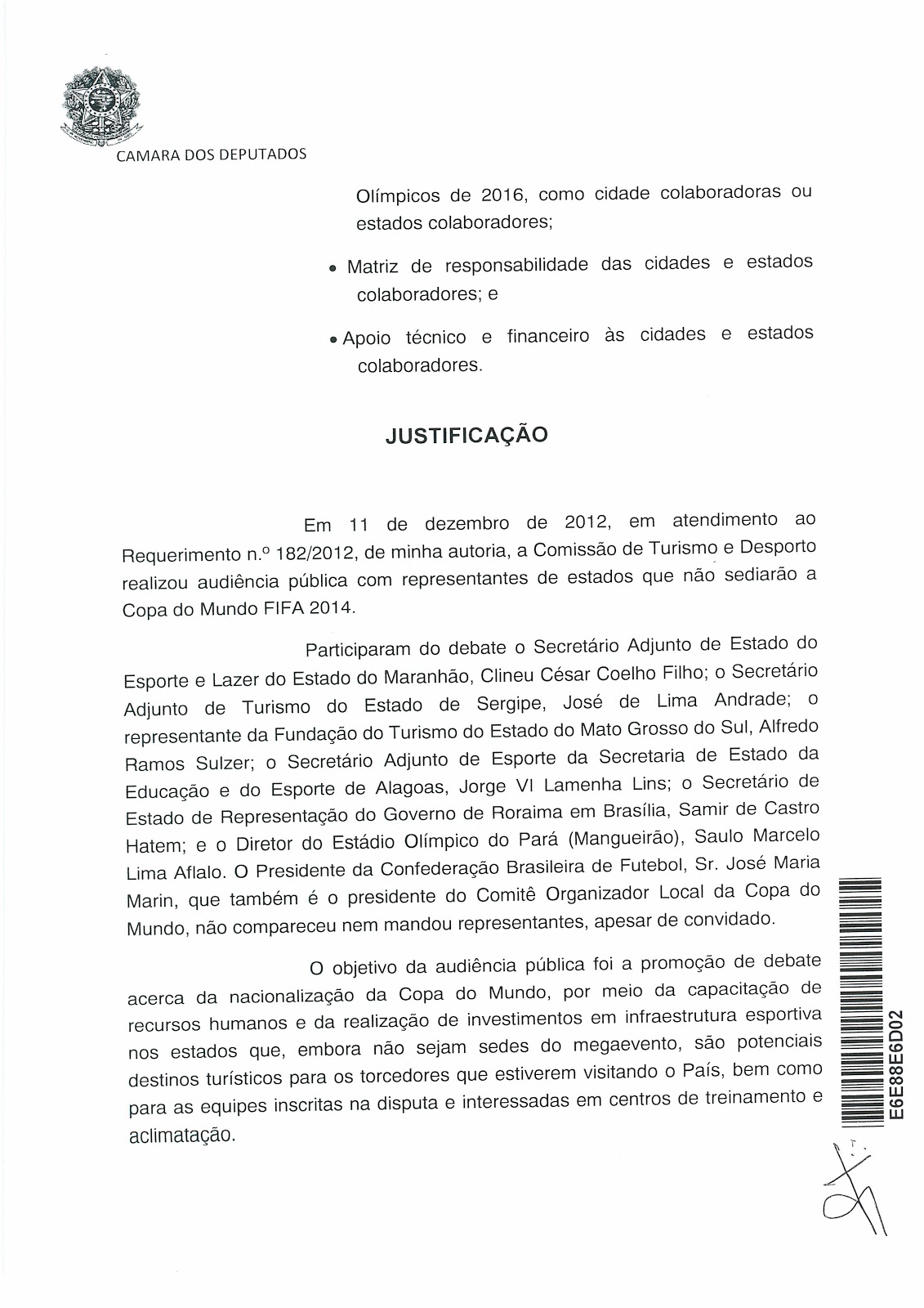 “Com vistas a dar prosseguimento à discussão e levar adiante a mobilização em favor desses estados não sedes, requeiro nova audiência, com o objetivo de que sejam apresentadas as ações já encaminhadas para colocar o Brasil inteiro em sintonia com esses eventos, que estão mobilizando recursos de todos os brasileiros para a sua realização, os quais merecem, portanto, o mais amplamente possível, ter retribuídos os seus esforços”, justifica Chiquinho Escórcio.