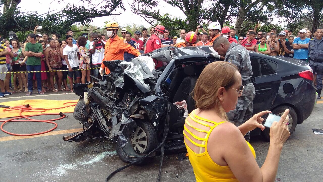 Um automóvel modelo hb20 rodou na pista molhada e colidiu frontalmente com um caminhão, confirmado cinco mortes, sendo três homens e duas mulheres.