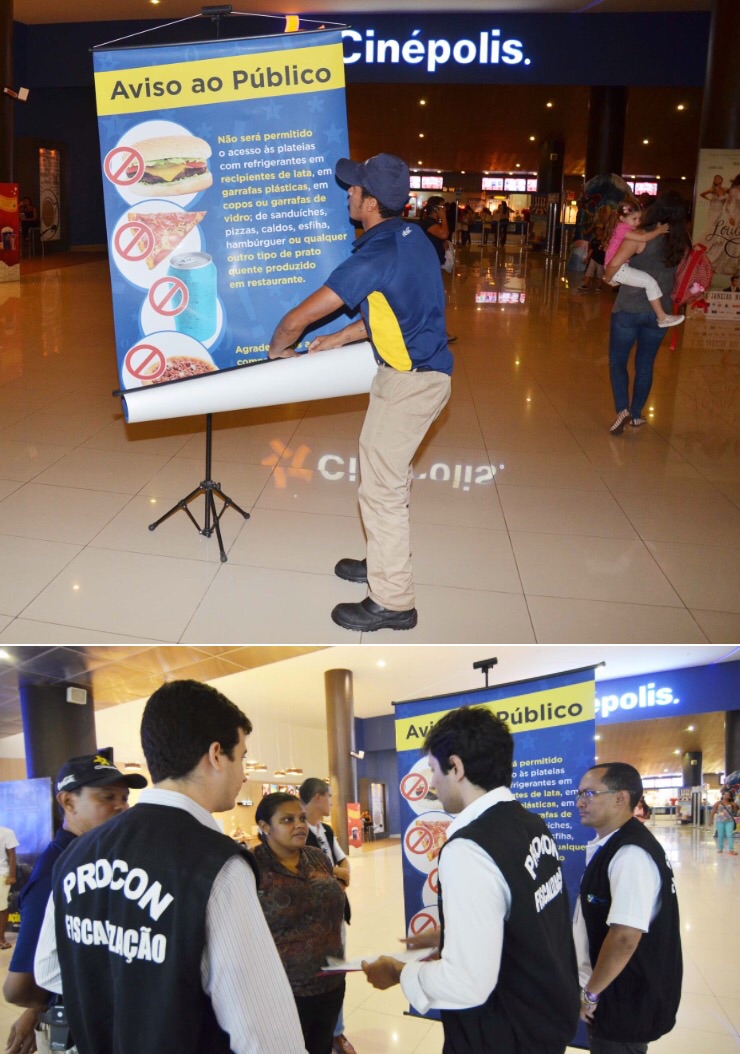 O cinema alegou que os consumidores são orientados a não entrar com os alimentos proibidos por causa do descarte inadequado e do mau cheiro que podem provocar no local. A equipe do Procon orientou os representantes da empresa que, ao invés de proibir a entrada dos clientes com determinados alimentos, desenvolvam práticas que incentivem o descarte correto do lixo.