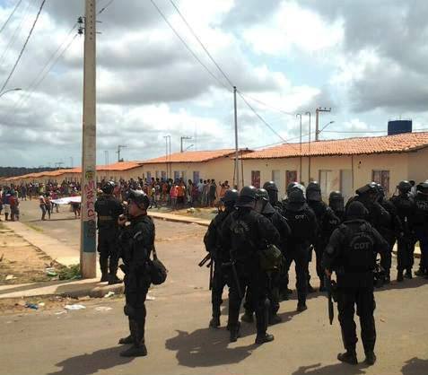 O clima é tenso, na manhã desta segunda-feira (26), no Residencial Nova Terra, no município de São José de Ribamar. Os ocupantes entre em confronto com a polícia atirando pedras. Os policiaisi militares reagem com gás lacrimogeneo, spray de pimenta e atirando para dispersar os manifestantes. Os policiais estão cumprindo a decisão da Justiça Federal e os ocupantes do Residencial Nova Terra, no município de São José de Ribamar, estão sendo retirados do local. A operação está sendo coordenada pelas Polícias Militar e Federal. Mais de 3 mil famílias invadiram as unidades habitacionais do Residencial Nova Terra.