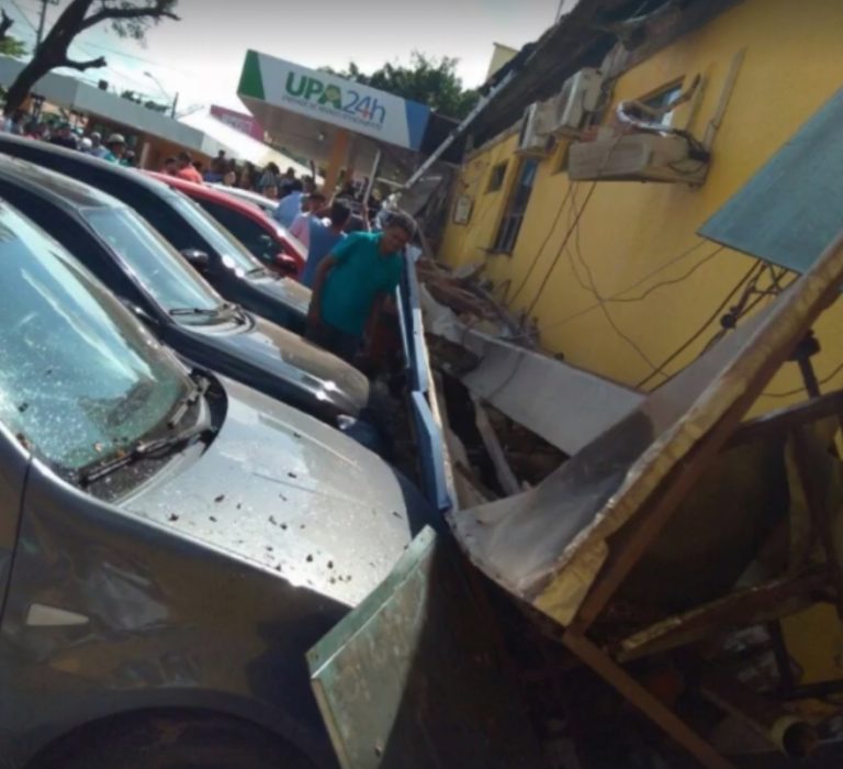 “A Secretaria de Estado da Saúde (SES) informa que, devido às fortes chuvas registradas desde a noite da quinta-feira (18), parte da estrutura de sustentação da placa de identificação da UPA da Cidade Operária desabou. Uma pessoa teve um ferimento superficial na mão, mas já foi atendida e liberada.