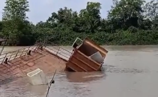 Com excesso de peso, uma balsa afundou junto com dois caminhões no rio Maracaçumé, Cândido Mendes, na manhã de quarta-feira (23).