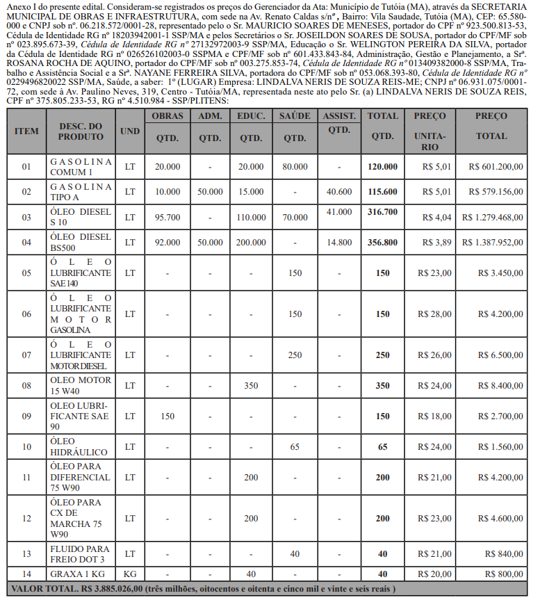 R$ 3.885.026,00 milhões. Esse é o valor que a Prefeitura de Tutóia vai pagar na compra de combustíveis.