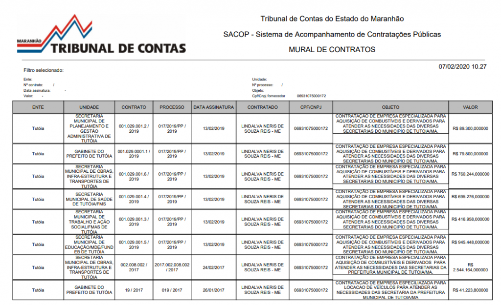 No site do Tribunal de Contas do Estado consta que ao todo, a Administração Municipal firmou R$ 5,5 milhões em acordos contratuais.