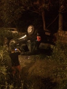 O veículo é um Gol 1.0 de cor preta, que após capotar ficou com os pneus para cima. Além de Bombeiros Militares e funcionários do SAMU, testemunhas disseram aos agentes da PRF que o condutor do Gol estava embriagado e desnorteado. Mesmo com ele imobilizado na maca os policiais confirmaram as informações pelo odor etílico expelido pelo acusado. Testemunhas disseram que ele estava bebendo na companhia de outras pessoas no bairro Vila Nova República.