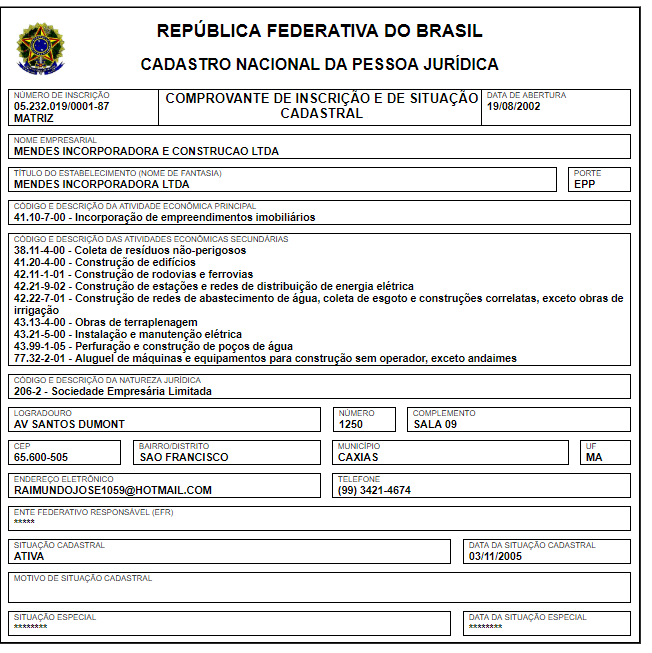 A construtora Mendes Incorporada e Construções, localizada em Caxias, ganhou um contrato milionário na Prefeitura de São João do Sóter.