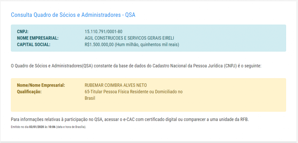 A construtora, de propriedade de Rubemar Coimbra Alves Neto, tem 6 meses para concluir as obras, no entanto o acordo contratual tem vigência de 12 meses.