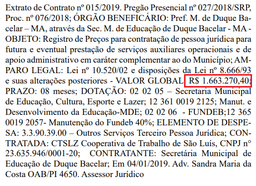 De acordo com as informações divulgadas no Diário Oficial do Maranhão, a empresa fornecerá mão de obra terceirizada para a Secretaria Municipal de Educação.