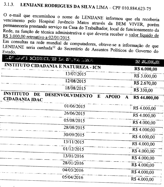 Trecho do inquérito da 5ª fase da Sermão aos Peixes, denominada Operação Pegadores, obtido pelo Blog do Neto Ferreira revela que Lenijane Rodrigues da Silva Lima, cunhada do secretário de Comunicação Social e Articulação Política, Márcio Jerry (PCdoB), recebeu R$ 65 mil do esquema criminoso montado na Saúde.