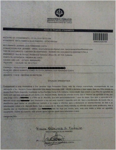 Após o servidor da Secretaria de Direitos Humanos, Marcelo Malty, tomar conhecimento que seu filho teria brigado na escola, ele de forma cruel e marginalizada deu um tapa na cara da outra criança de 10 anos.